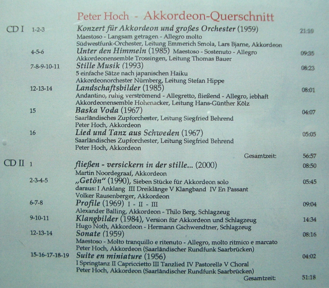 Werke für Akkordeon aus den Jahren 1956 bis 2000
