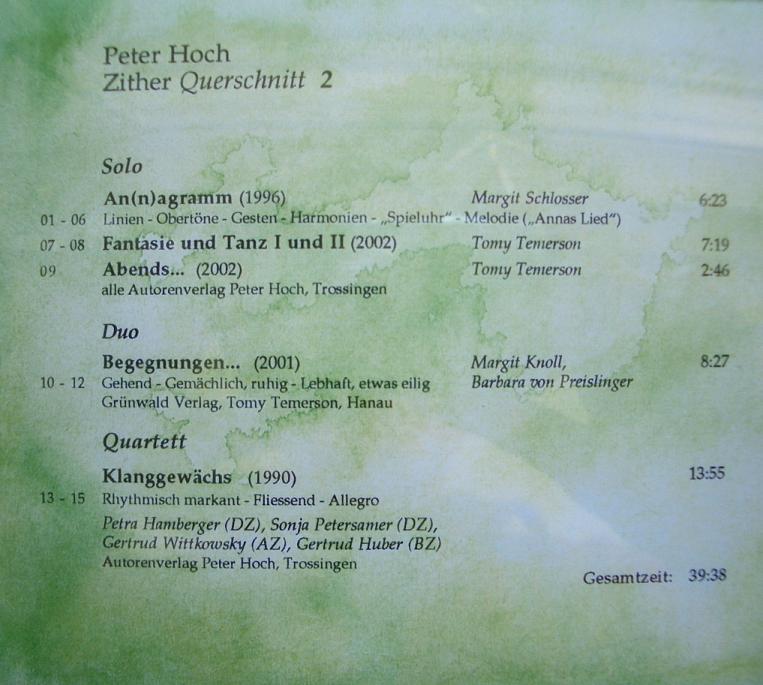 Zither-Querschnitt 2 (Werke für Zither aus den Jahren 1990 bis 2002)