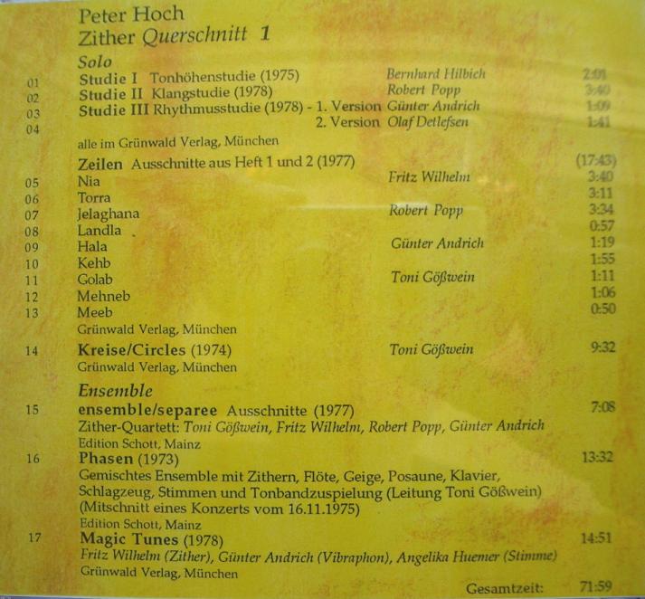 Zither-Querschnitt 1 (Werke für Zither aus den Jahren 1974 bis 1978)